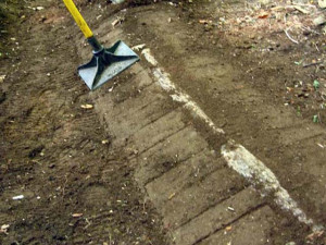 The finished trench (see Figure 9) should be only an inch or two longer, deeper, and wider than the log itself. Pry out large subterranean rocks with a rock bar or, while wearing safety glasses, pulverize them with a mash hammer.